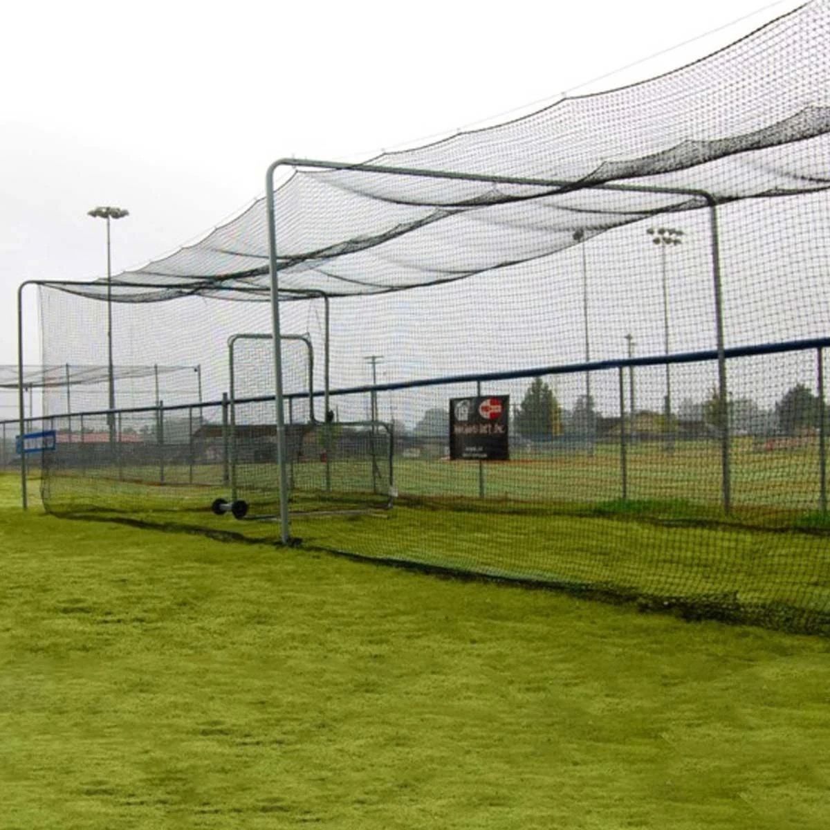 The Pro Cage 55′ x 14′ x 12′, 2.6mm batting care net features a twisted, knotted construction making this net the strongest form of netting for commercial use and will not run if it is cut due to its very high abrasion resistance. The Pro batting cage net is a permanent black color that will not fade or need re-dying and is 100% waterproof with a UV coating that will not wear off. This net never droops and requires no need to re-stretch.