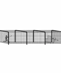The 70′ x 14′ x 12′, 2.6mm Pro Cage batting cage net are constructed of heavy synthetic HDPE fiber with a permanent black color that is 100% waterproof and will not fade or require re-dying. UV additives are extruded directly into the filament and the coating will not wear off. The twisted, knotted construction makes this net the strongest form of netting for commercial use and will not run if it is cut due to its very high abrasion resistance. This net never droops and requires no need to re-stretch.