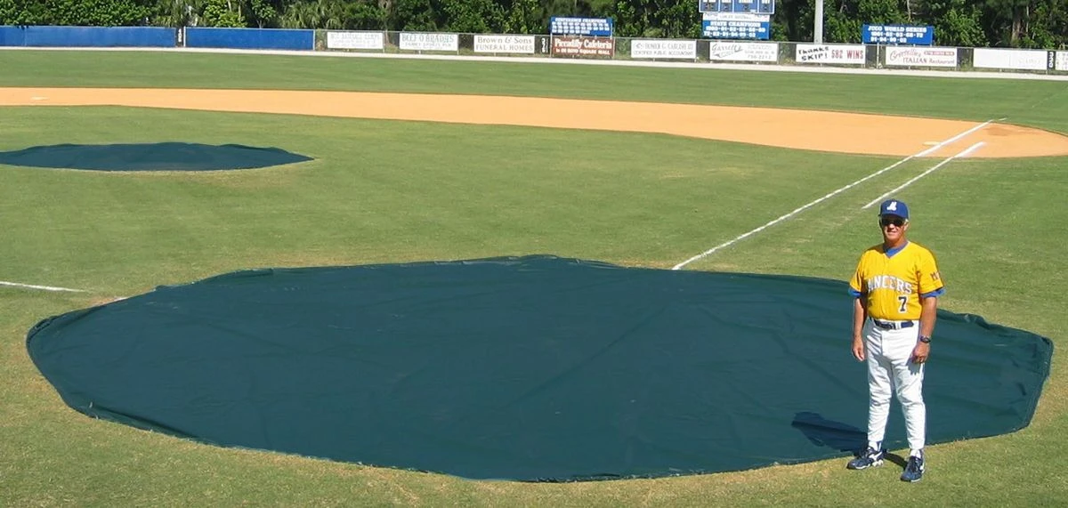 The Aer-Flo WWV1812, 12′ diameter wind weighted mound/homebase tarp weighs 32 lbs and stays put without stakes or sand bags! A steel chain is sewn into the edge hem all around the cover to keep the wind from getting under. These tarps are proven to stay down in winds over 65 miles per hour. Expertly constructed of heavy duty 18oz, UV protected vinyl that will last season after season! Save time by eliminating the need for stakes and sandbags.