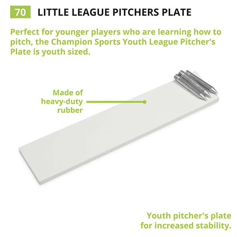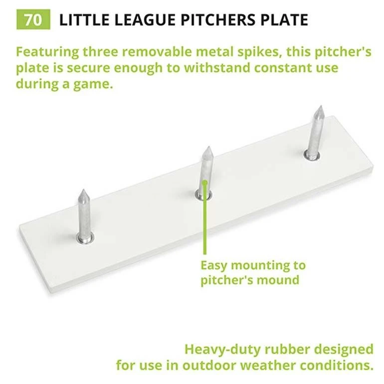 This official youth league pitcher’s plate is an economical solution for your ball field. Three metal spikes are included to hold it down securely and the rubber can easily be removed or replaced.