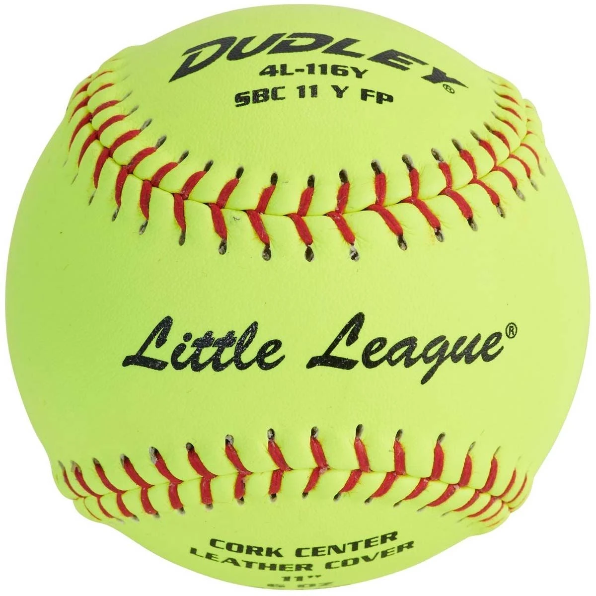 The Dudley 11″ SBC 4L116Y fastpitch softball features a durable leather cover that provides exceptional feel and aesthetic appeal. This Little League approved fastpitch softball is constructed with a cork center, with a .47 COR and 375 lb compression.