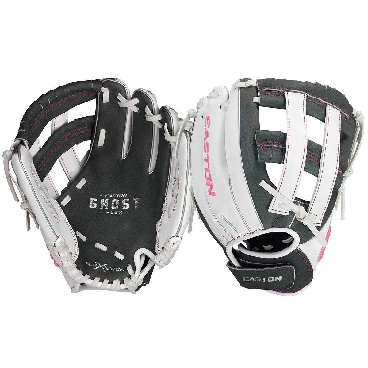 The Easton Ghost Flex youth fastpich softball glove is ideal for beginner players with its lightweight design and Flex Notch™ system for an easier to close pocket. This model comes in a 10″ size that is ideal for infielders. The Ghost Flex features soft genuine pigskin leather combined with embossed Hyperlite synthetic leather to provide a lightweight feel. The super soft palm lining gives players better grip and control of the ball. The Lock Down wrist strap design allows for easy adjustment to the perfect fit.