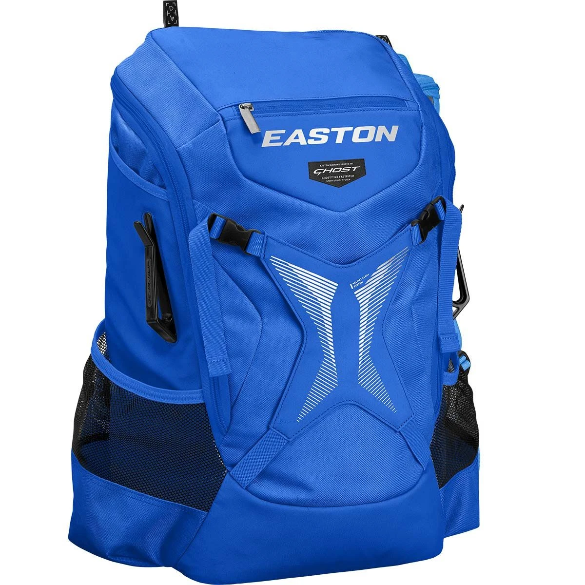 The Easton Ghost NX fastpitch backpack is essential for softball players looking to carry their gear to games and practices in style. Featuring an extra-wide main compartment with large zippers, this backpack is durable and has more than enough room for your equipment. The exterior of the bag has a metallic-printed helmet holder, allowing for more space inside and additional dry time for your helmet. Patent pending Gear Klips™ on the sides are perfect for holding a pair of cleats, ball gloves, batting gloves, or other gear. In addition, the NX backpack has 2 full-length bat sleeves to protect them during travel. The expandable mesh pockets on the side accommodate oversized water bottles while the front personal pocket keeps valuables within reach, but out of sight. Female-specific padded back and shoulder straps make carrying this backpack a comfortable experience. When you reach the dugout, the tuck-away fence hook allows you to hang your bag off the ground and at arms reach.