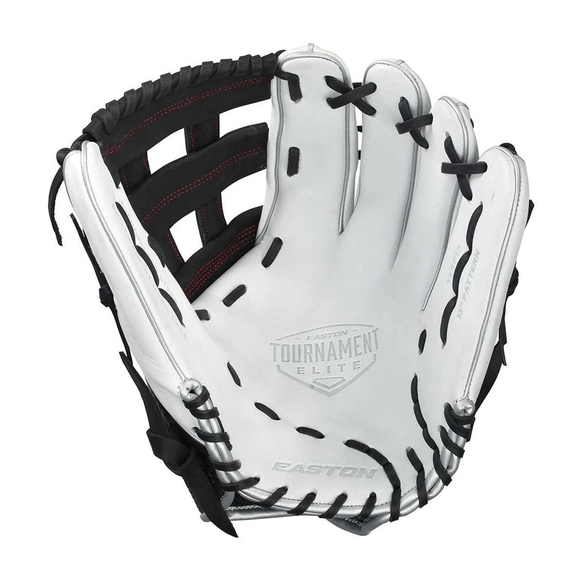 The Easton TESP13 13″ Tournament Elite H-Web softball glove is perfect for all positions in a slowpitch softball game. The glove’s softball specific patterns are designed to create a wider heel and more pocket depth. This Easton model also boasts Diamond Pro Steer™ USA leather and incredibly smooth cowhide palm lining for enhanced comfort and durability. With a rolled welting system, the glove’s break-in process is expedited significantly. The Quantum Closure System™ features an adjustable open back for a secure fit every time you take the field. This glove also features durable professional grade rawhide lace as well as a repositioned pinky loop so that players can fit two fingers In the pinkie stall.