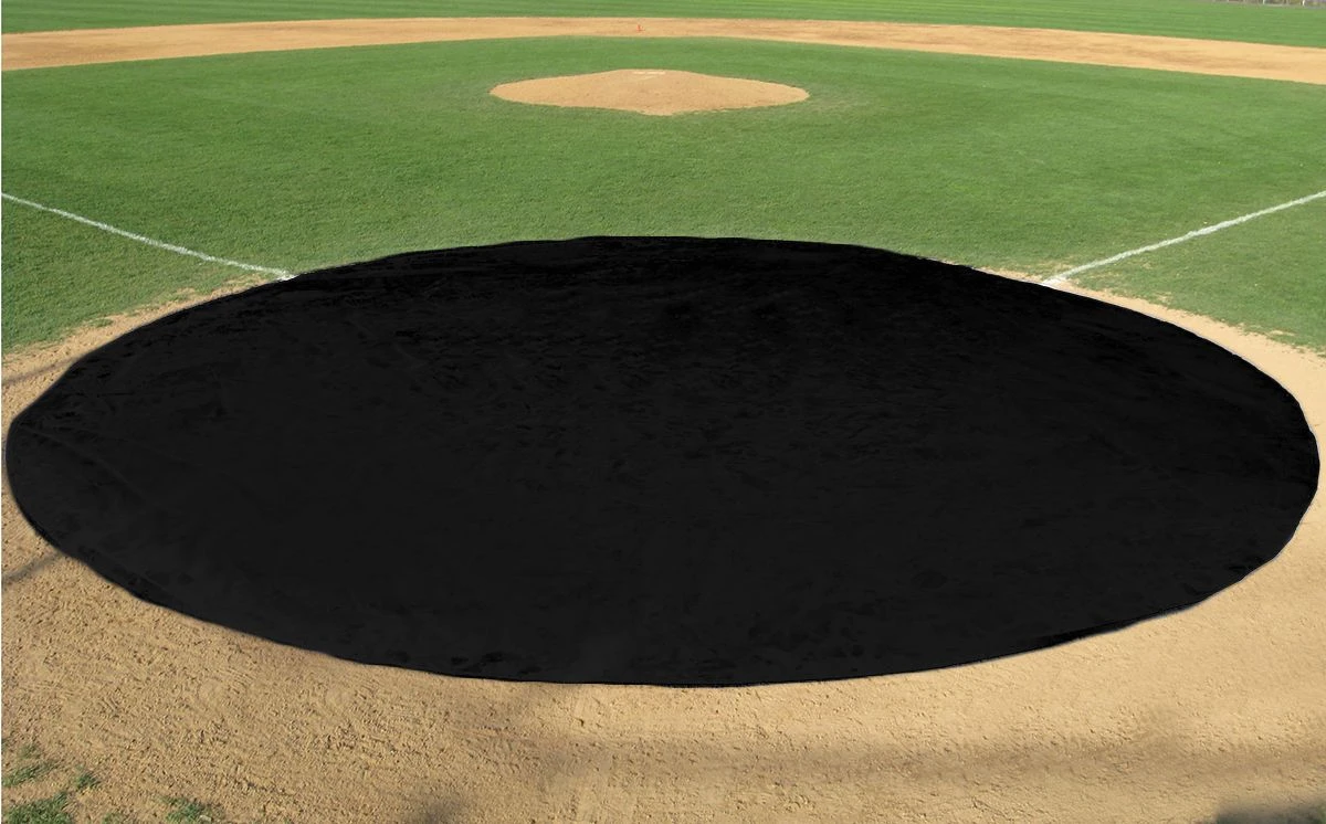 FieldSaver base covers keep your field game-ready in all weather conditions. The 20′ diameter spot cover is much easier to handle than full infield covers at a fraction of the cost and it keeps the most important areas of the infield dry. The heavy duty 18 oz. reinforced vinyl construction is rip resistant and the most durable available it will not crack through the coldest winters. Ground stakes are included to secure the cover or see below for sand bags as an option.