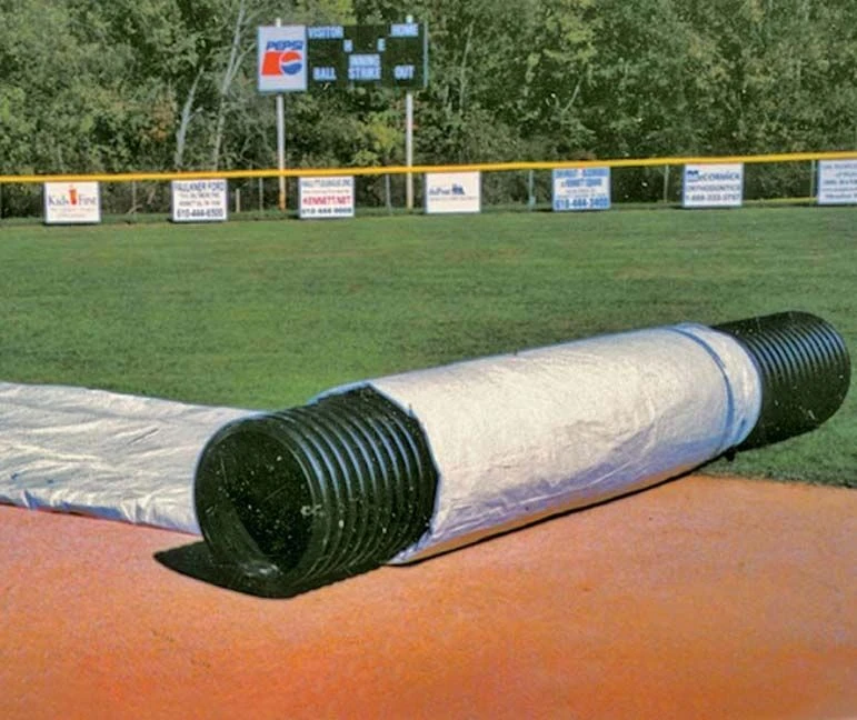 This Cover Sports infield cover roller is made from heavy duty, double-wall corrugated HDPE (plastic). The 28″ diameter roller makes storing rain covers quick and easy.