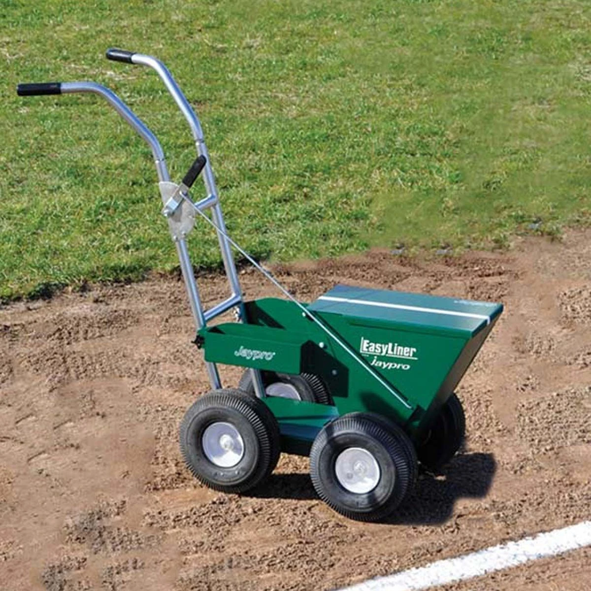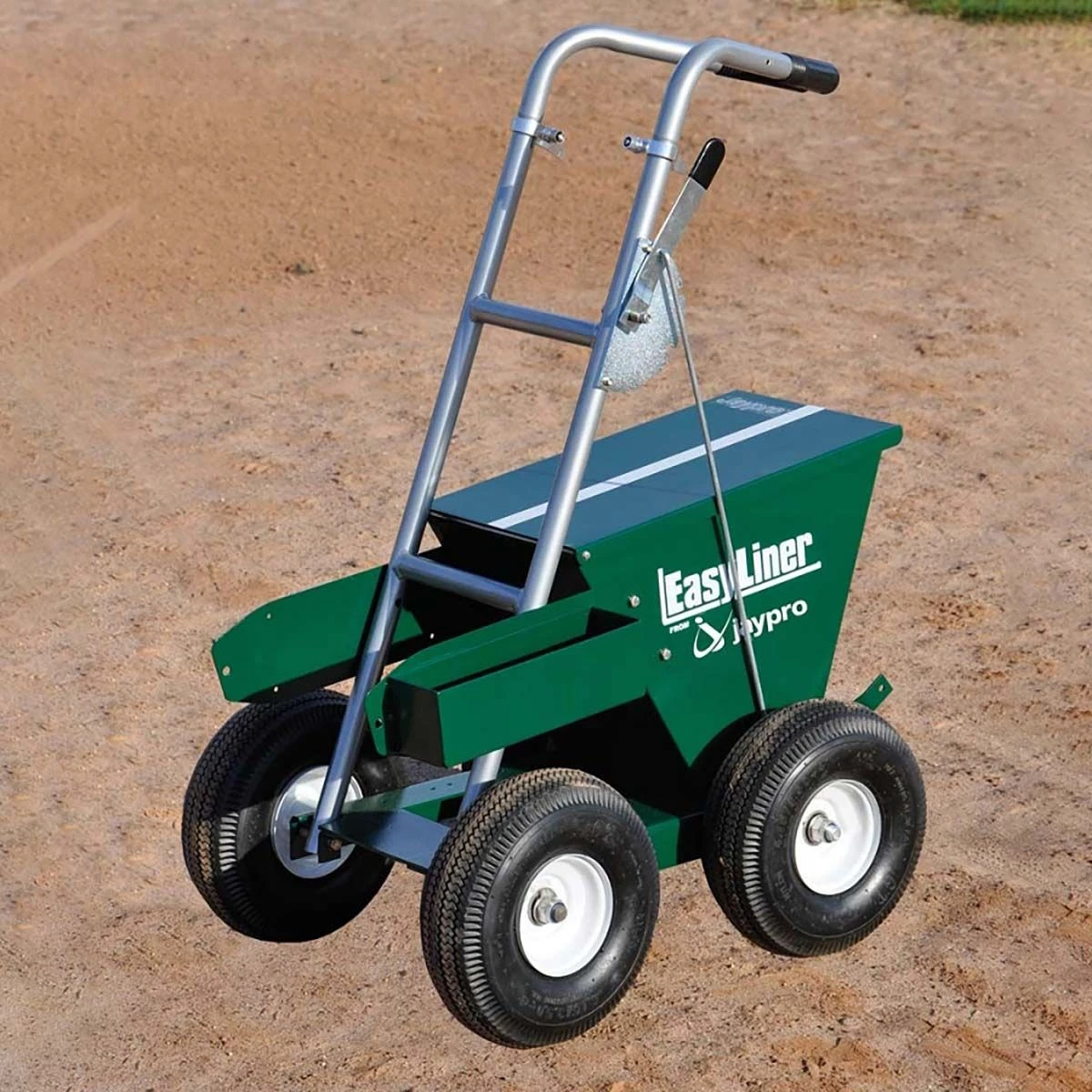 The 100lb capacity EasyLiner has an 18-gauge steel construction with precision control for 2″ or 4″ lines. This dry line field marker also has handle mounted control levers for instant on/off and over-sized foam-rubber hand grips for comfort. The steel plate frame increases durability and longevity and the 1/2″ steel axle bushings and drive shafts make for easy mobility.