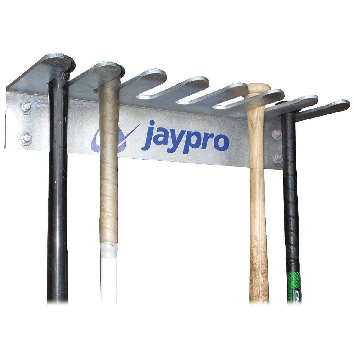 The hanging wall-mount bat rack from Jaypro allows your team to store up to 14 bats (2 per slot) in your current dugout fence or wall. The rack is constructed of heavy-duty powder coated steel and includes all of the mounting hardware needed to install in your dugout. This rack can be installed into concrete/brick, wood walls, or drywall (drywall anchors not included). Click “Additional Info” tab for installation instructions.
