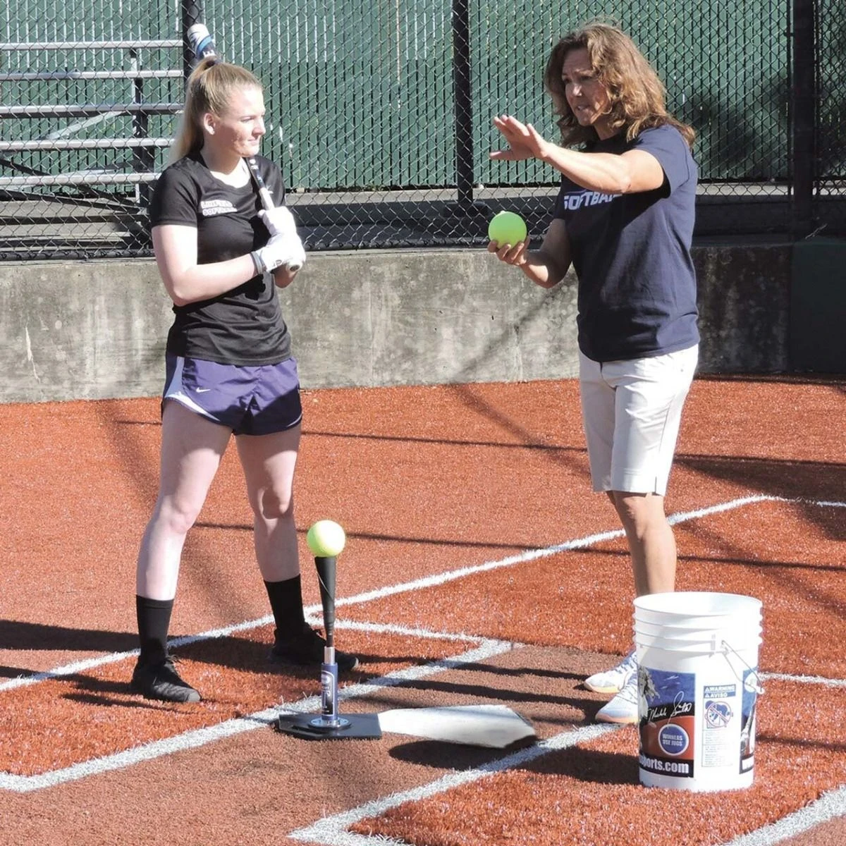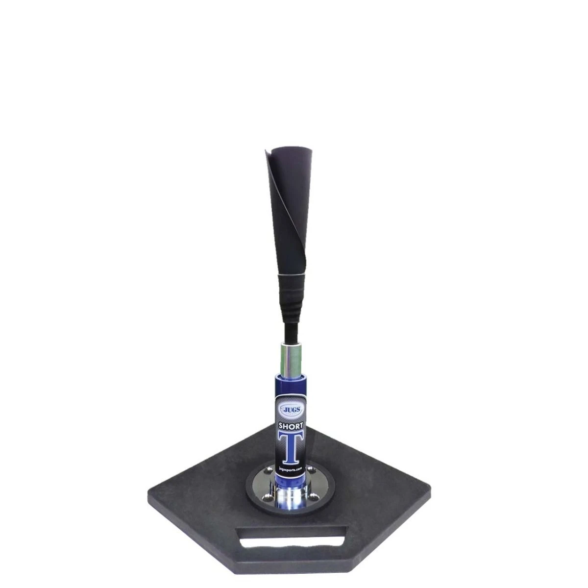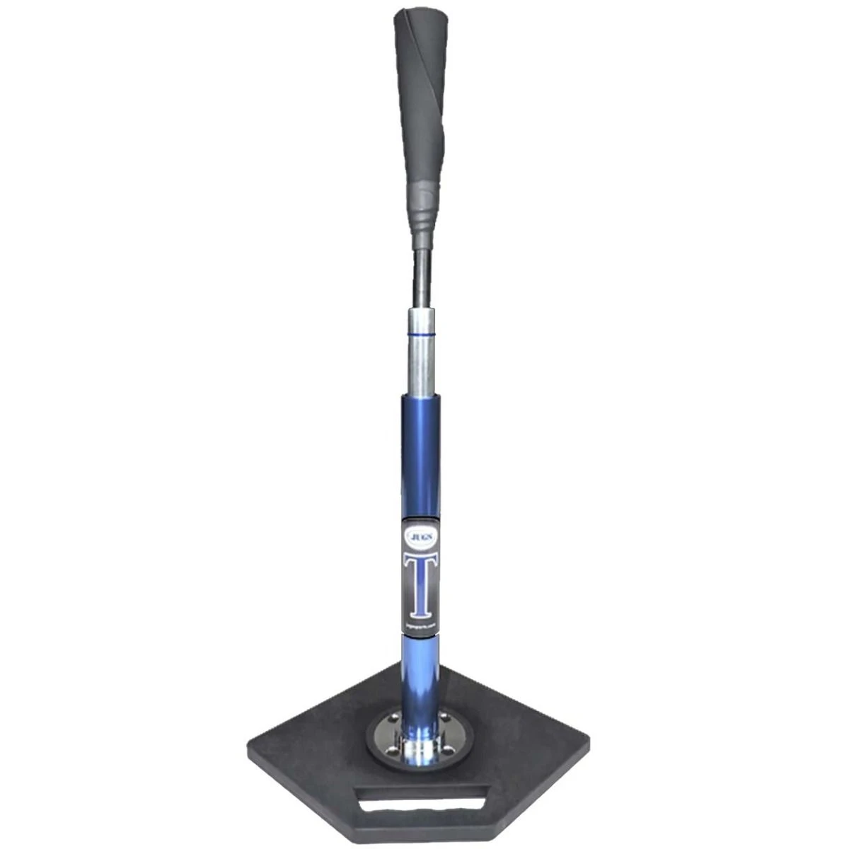 The Jugs combo T batting tee package features 2 interchangeable batting tee stems and 1 base that lets players work at every level of the strike zone. The short tee stem is adjustable from 16” to 23” and the larger tee stem is adjustable from 24” to 46”. The steel base is covered in round rubber edges that won’t scratch or scuff your gym floor and features a grip-n-go handle for easy transport. The always-feel-the-ball flexible top on both stems allow hitters to feel the ball on contact rather than the tee. The patented internal interlocking bolt design prevents slippage of the upper tee stem making the Jugs combo T a high-quality solution for hitting drills at any skill level.