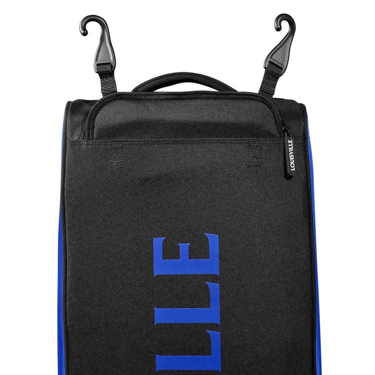 The Louisville Slugger Omaha rig wheeled bag is a must-have for serious ballplayers. A zippered bat compartment comfortably fits four bats and the main compartment houses a helmet, gear and your glove. An interior L bracket helps your bag last longer with inline wheels and integrated fence hooks for easy transport and storage.