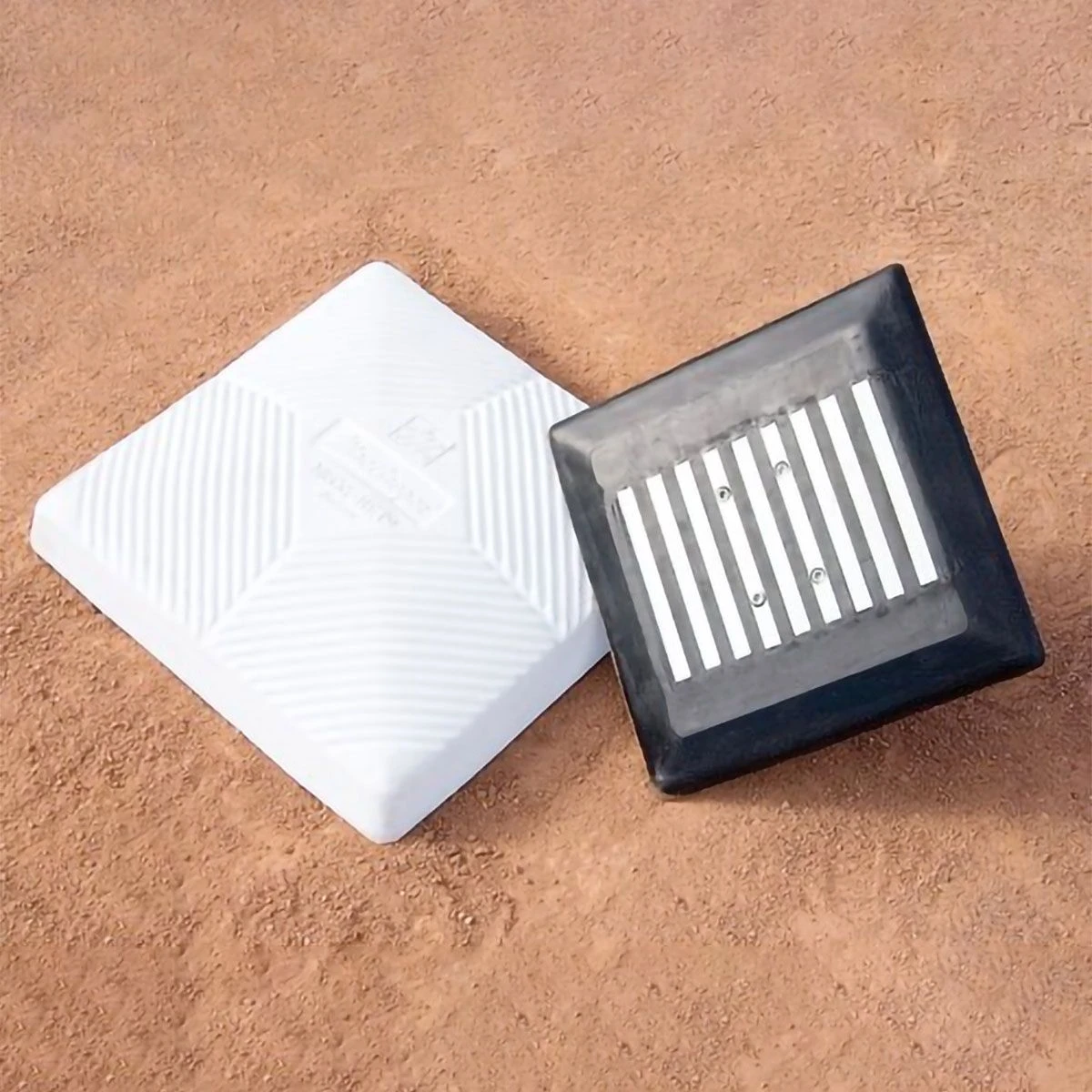 The magnetic break-free base reduces the risk of injury that may occur when players slide into base. The base cover features a metal stanchion pan that breaks free from the magnetic base when impacted. The holding strength of the magnetic base can be adjusted via three included interchangeable plates that bolt to the bottom of the base pan, making it easy to customize the playing field to suit players of all ages and skill levels. As an added safety measure, the rubber base cover has a ribbed surface that keeps cleats from slipping on the bag, letting players round the bases with confidence. The magnetic break-free base is apporved for play in Little League baseball and is backed by a 1-year manufacturer’s warranty.