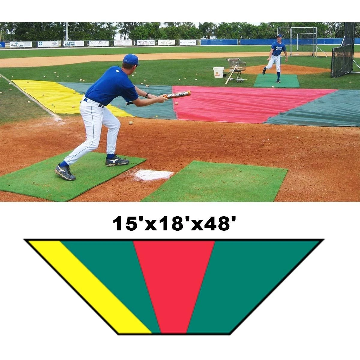 The Bunt Zone Infield protector improves team bunting and protects the infield all in one. The Bunt Zone protector teaches bunting and hitting placement by visualization. This turf protector improves overall team batting skills when used at every practice. The 15’x18’x48′ color-coated zones help players learn where to properly hit the ball. The yellow section is “bunt-for-a-hit” zone, green zones are the “sacrifice bunt” target areas and the red is the “bad bunt” zone, but also the area to avoid in hit-and-run or pull-hitting situations.