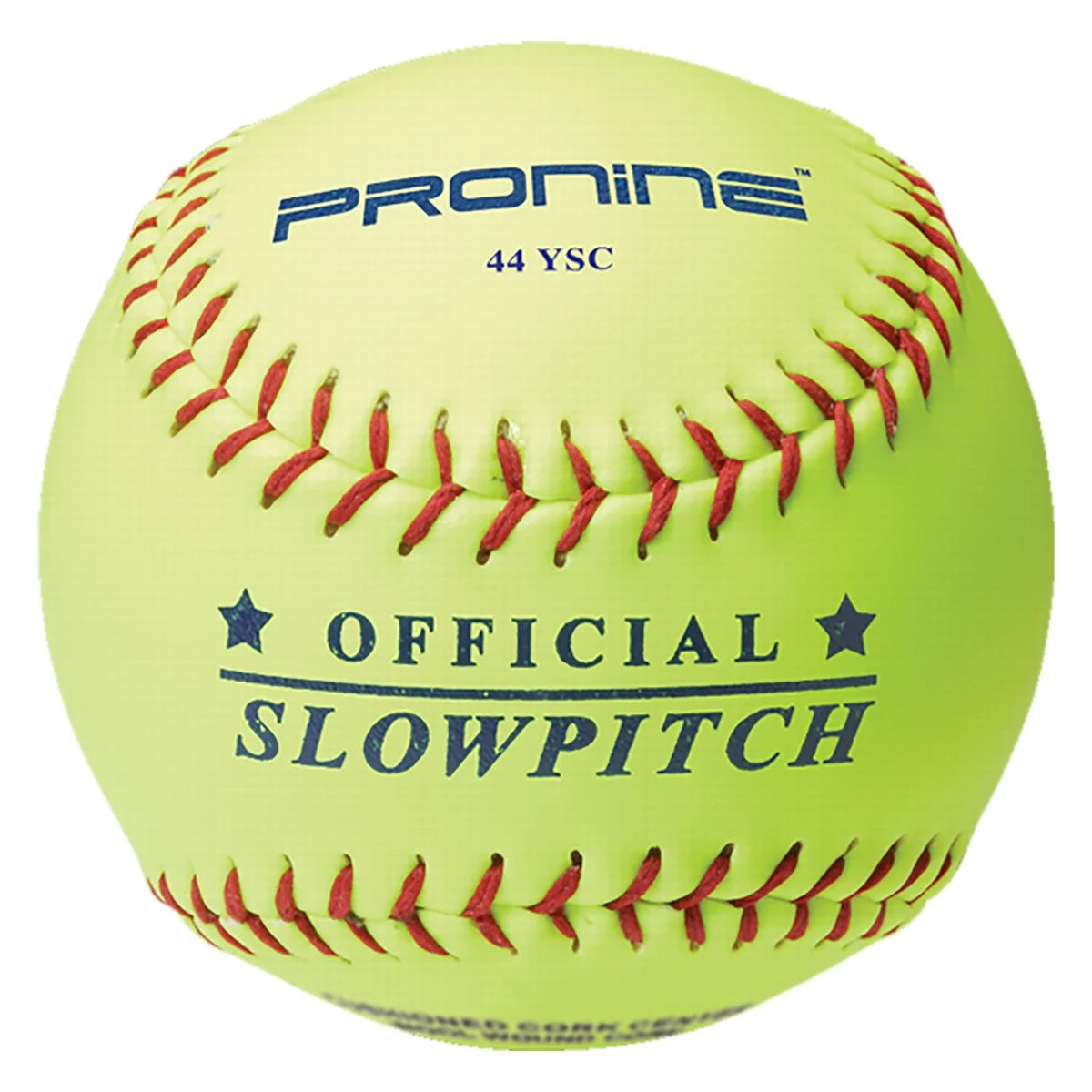 The Pro Nine 12″ YSC synthetic slowpitch softballs feature an optic yellow synthetic tacky grip cover and a solid polyurethane core. This slow pitch softball is constructed with a 44 COR, 375 lb. compression, and a medium seam height, making for a ball that won’t dent bats.