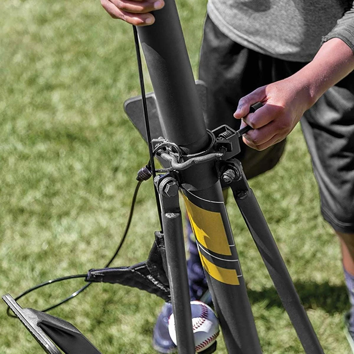 The SKLZ Hit-A-Way PTS portable baseball batting trainer consists of a sturdy pole and twist-back design that maximizes player’s power, swing speed and mechanics through repetition training. The trainer’s all-in-one design sets up and collapses easily for efficient transport and storage. The twist-back design simulates real pitches and is ideal for individual or team practice.