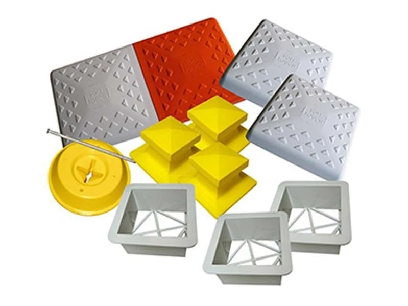 - Set includes (2) A Series bases, (1) A Series double first base, (3) 7″ plastic ground anchors, (3) tapered plugs, (1) 12” spike, (1) spike-down disk