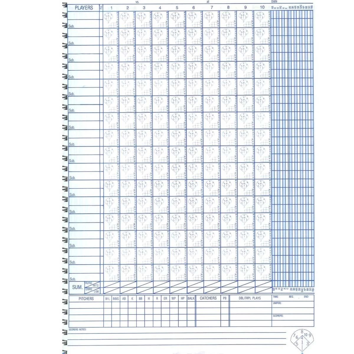 So easy, anyone can keep score! Keep a complete record of the game, players, line up cards and season summary with the Super 16 Scorebook. This scorebook stores team rosters, average chart, season summary, games and schedules.